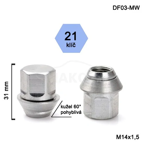 - Kolová matice M14x1,5 kužel zavřená pohyblivá, klíč 21