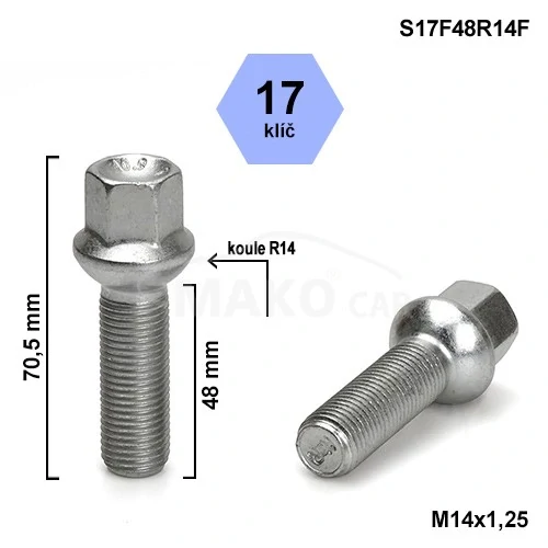 - Kolový šroub M14x1,25x48 kulová R14, klíč 17