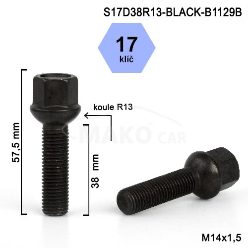 - Kolový šroub M14x1,5x38 koule R13, klíč 17