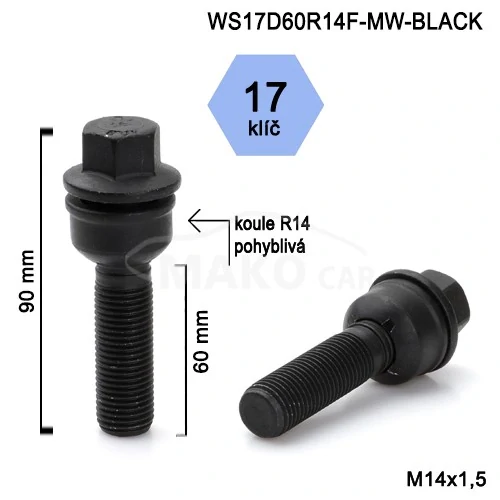 - Kolový šroub M14x1,5x60 kulová R14 pohyblivá, klíč 17