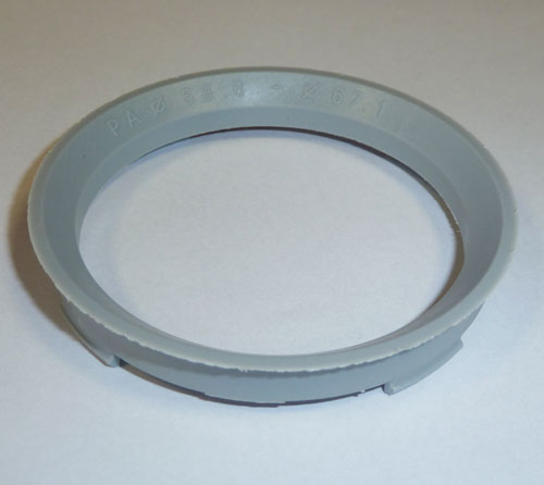 Centrovací, vymezovací kroužek 67,1 / 58,6 plast, barva šedá, přesah kužele 3mm