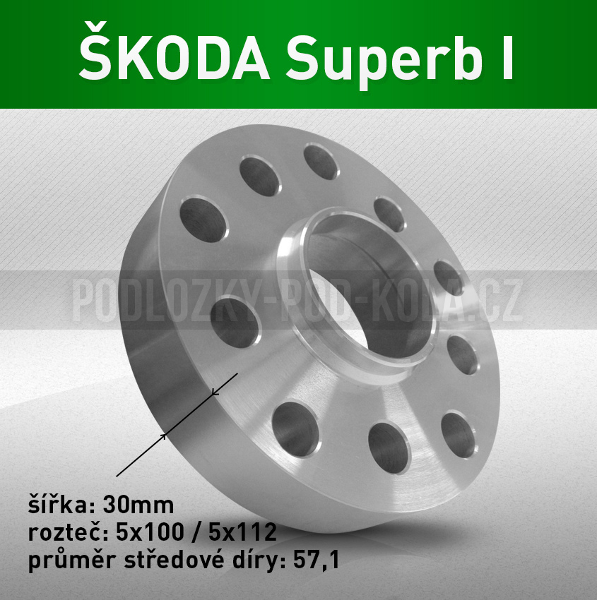 - Podložky pod kola ŠKODA Superb I, šíře 30mm, rozteč 5x112, střed 57,1 - průchozí, 1ks