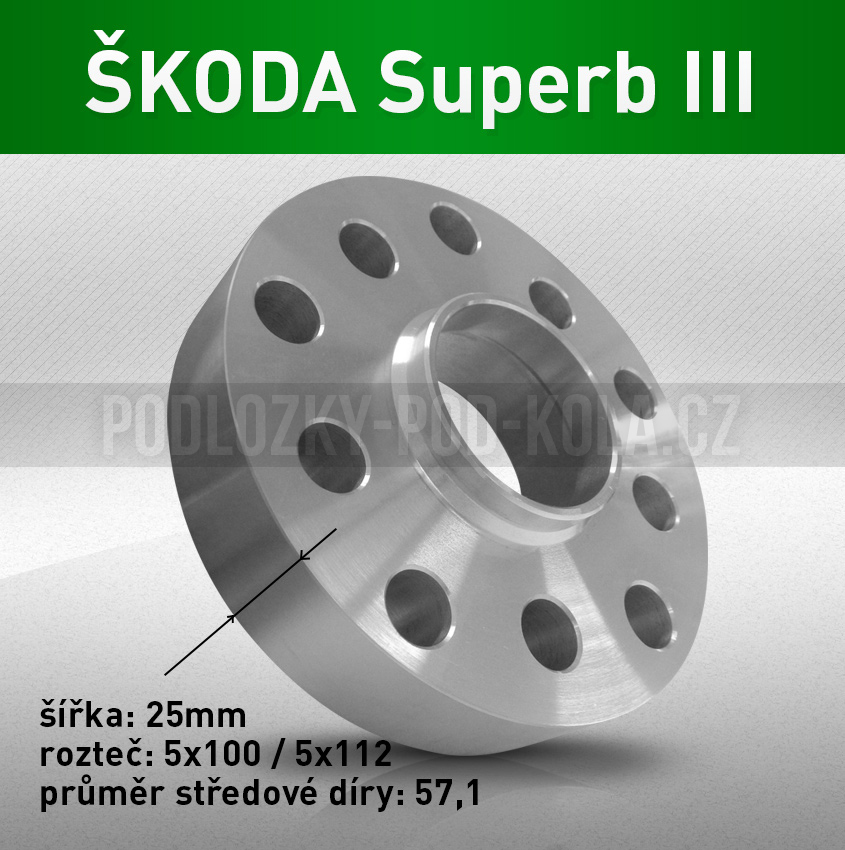 Podložka ŠKODA Superb III, šíře 25mm, rozteč 5x112, střed 57,1 - průchozí, 1ks