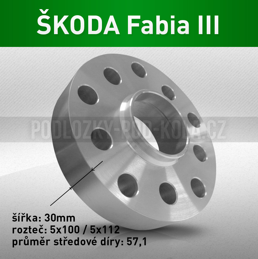 - Podložky pod kola ŠKODA Fabia III, šíře 30mm, rozteč 5x100, střed 57,1 - průchozí, 1ks