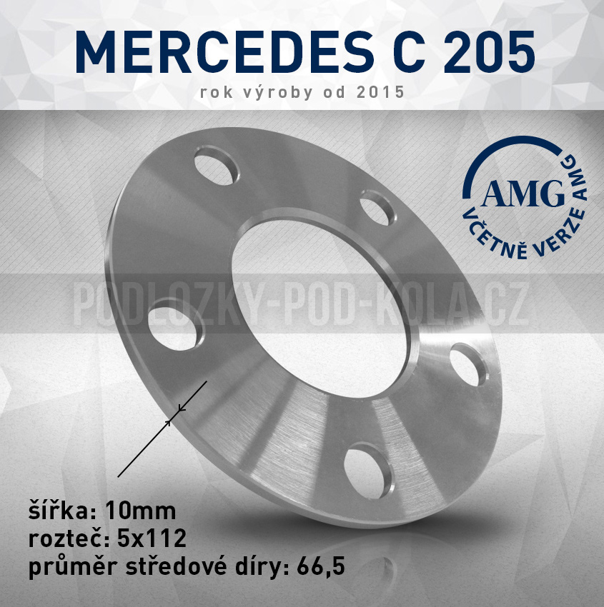 Rozšiř. podložka Mercedes C 205, šíře 10mm, rozteč 5x112, střed 66,5 - průchozí, 1ks