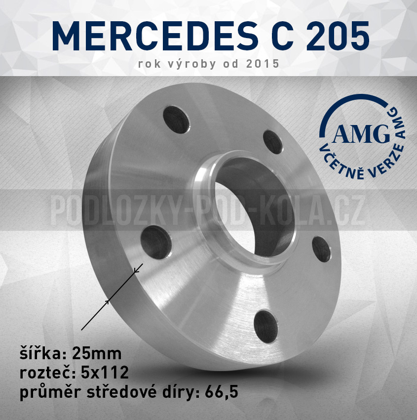 Podložka Mercedes C 205, šíře 25mm, rozteč 5x112, střed 66,5 - průchozí, 1ks