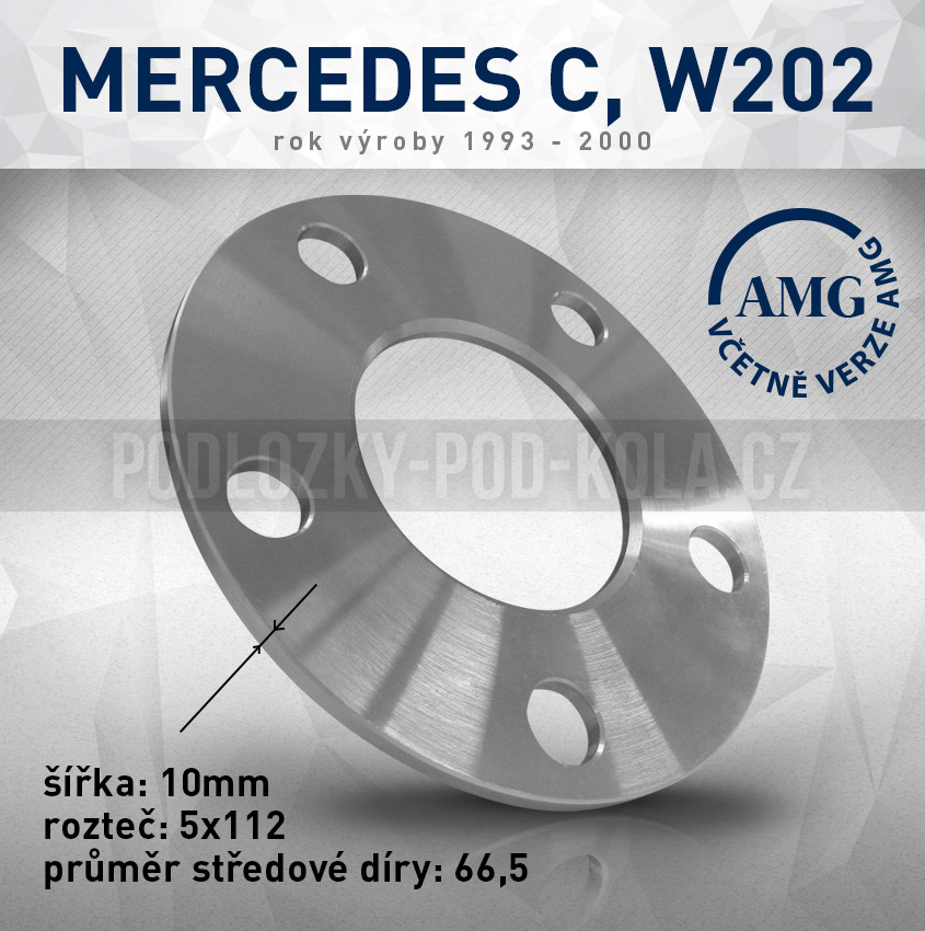 - Rozšiř. podložka Mercedes C, W202, šíře 10mm, rozteč 5x112, střed 66,5 - průchozí, 1ks