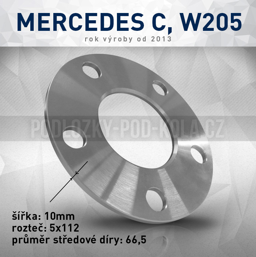 - Rozšiř. podložka Mercedes C, W205, šíře 10mm, rozteč 5x112, střed 66,5 - průchozí, 1ks