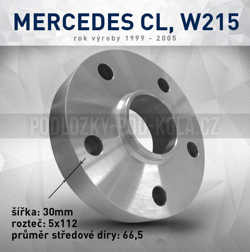 Rozšiř. podložka Mercedes CL W215, šíře 30mm, rozteč 5x112, střed 66,5 - průchozí, 1ks