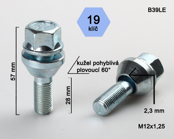 - Kolový šroub M12x1,25x28mm, dosedací plocha plovoucí kužel, klíč 19, pozink