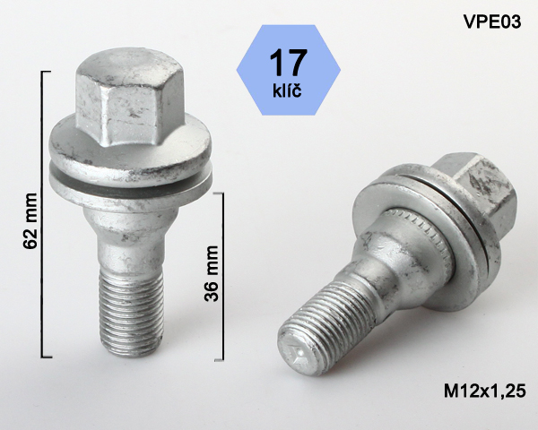 - Kolový šroub M12x1,25x36mm, plochá podložka, klíč 17, pozink