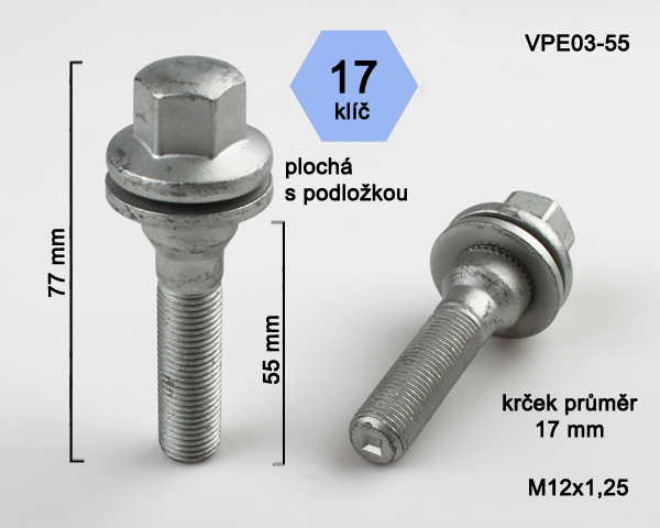 - Kolový šroub M12x1,25x55mm, plochá podložka, klíč 17, pozink