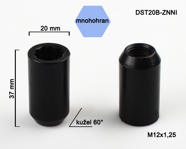 - Kolová matice M12x1,25, kužel s vnitřním mnohohranem, průměr 20, černý pozink