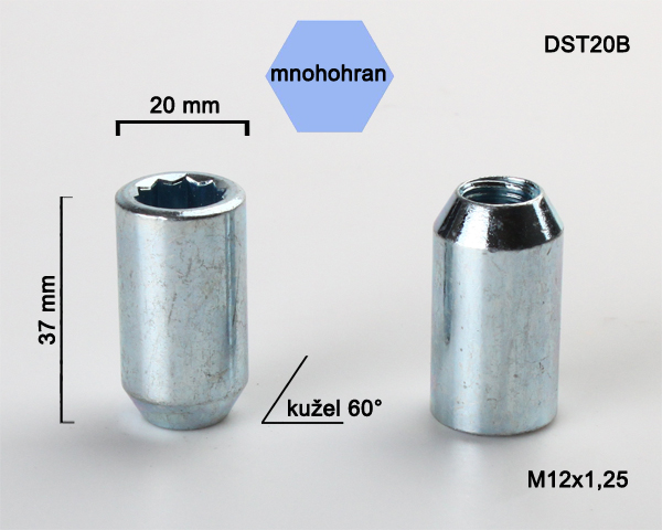 Pevnostní kolová matice M12x1,25mm o celkové výšce 37mm, s vnějším průměrem 20mm je určená pro uchycení disků k automobilu.