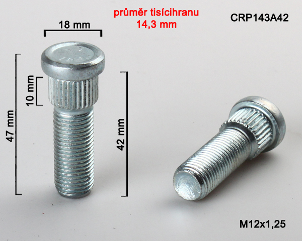 - Kolový Svorník M12x1,5x42mm, průměr tisicíhranu 14,3mm